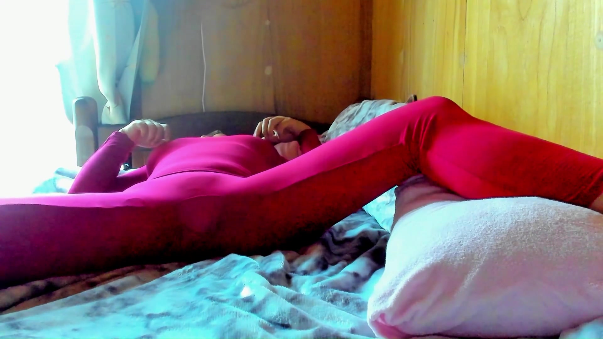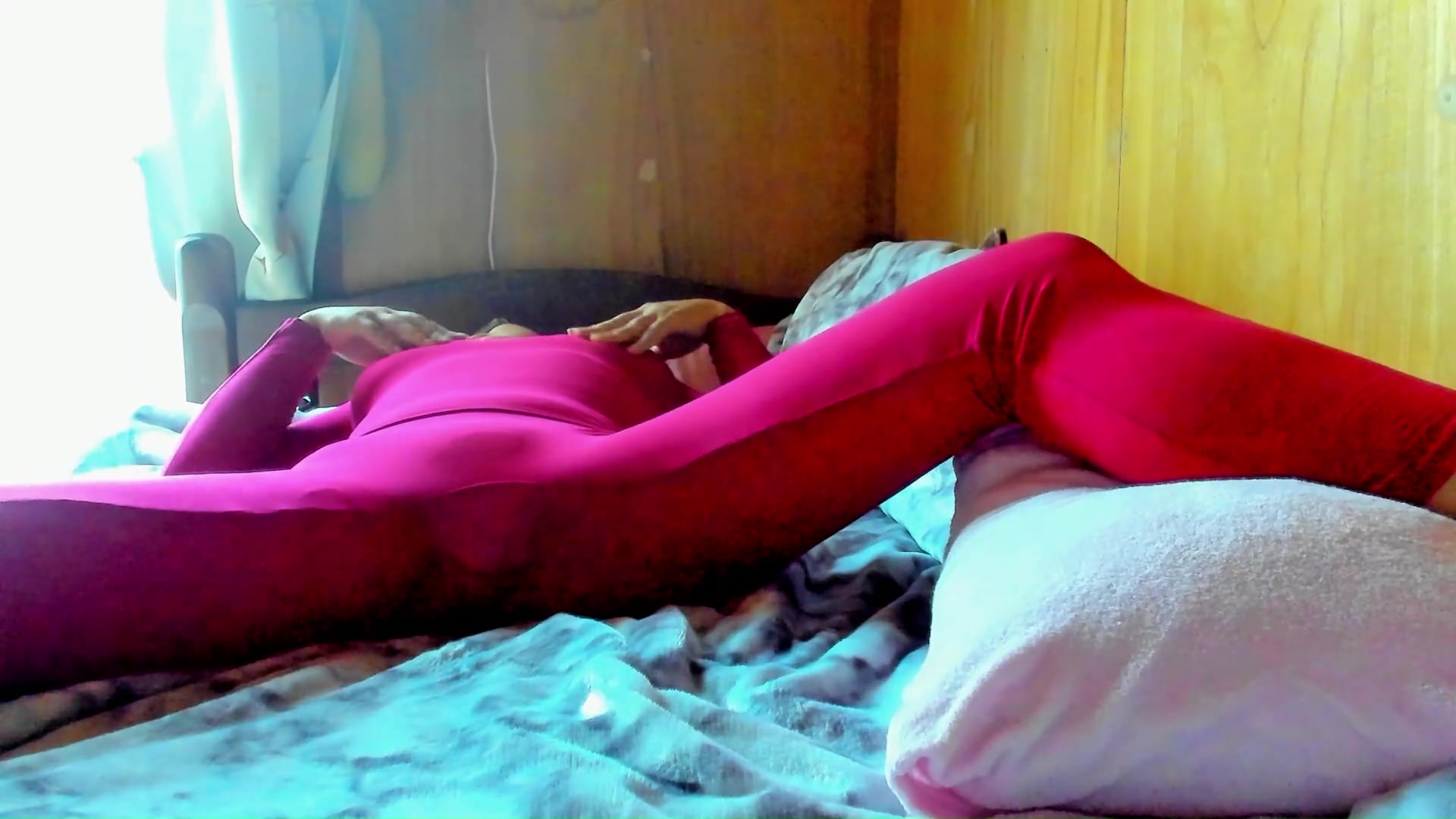 「あ~これ♡マンコとケツにクるっ♡」最初にすかしっ屁してから排泄我慢乳首オナニーする全身タイツの日本人女性。