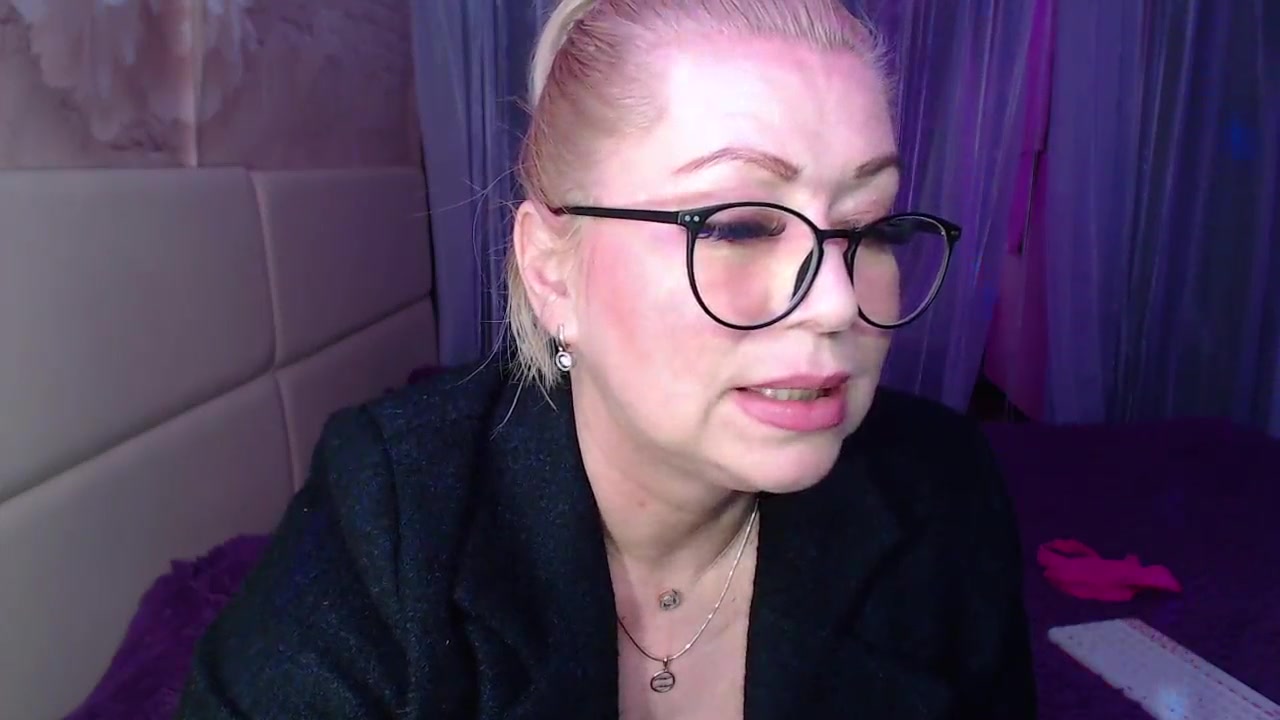 A cool busty vulgar mature bitch in glasses with a ponytail on her head...