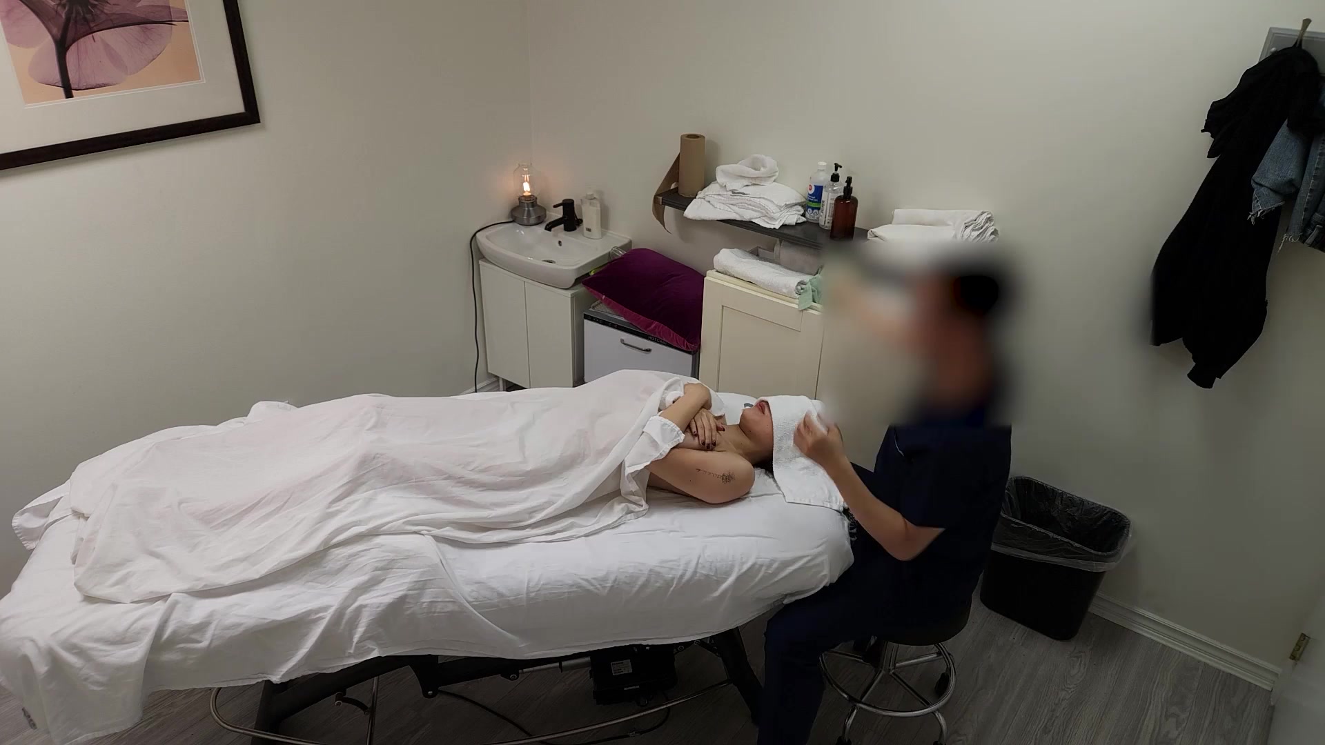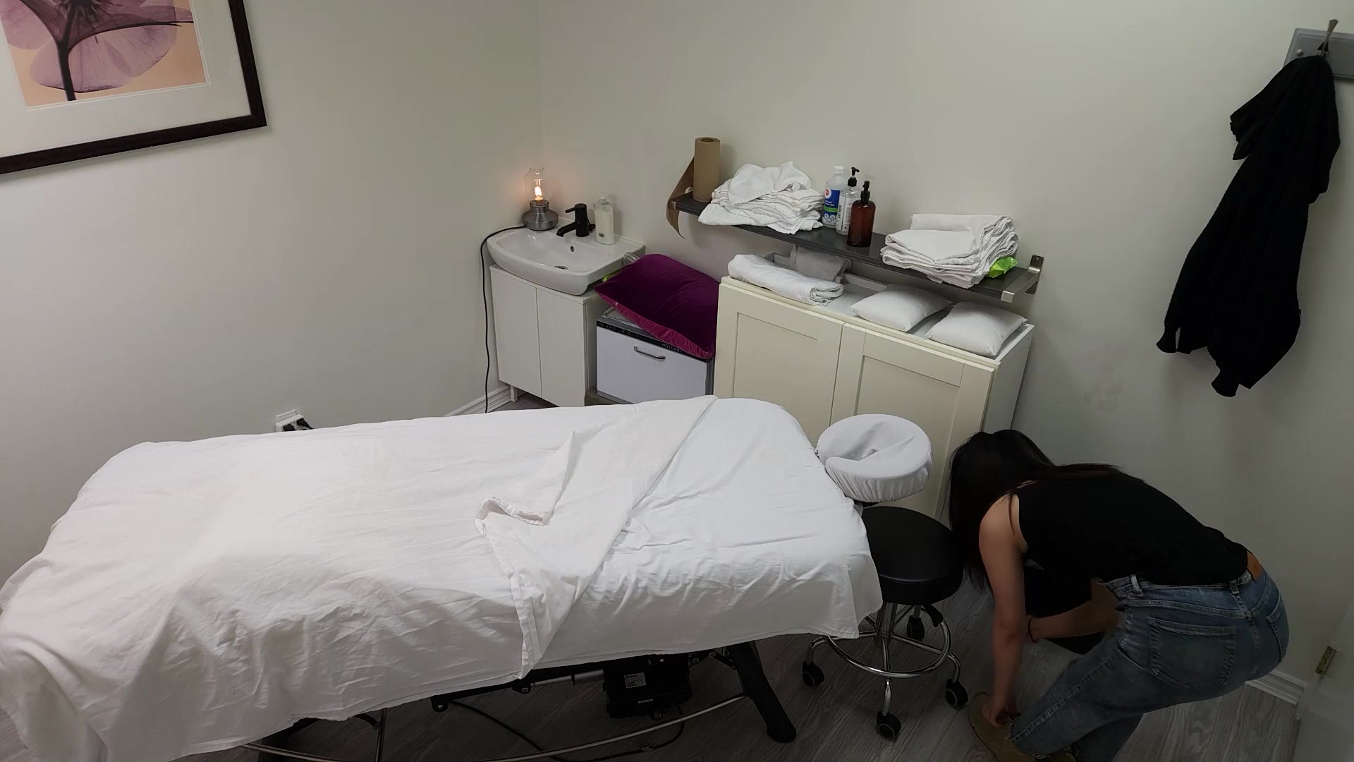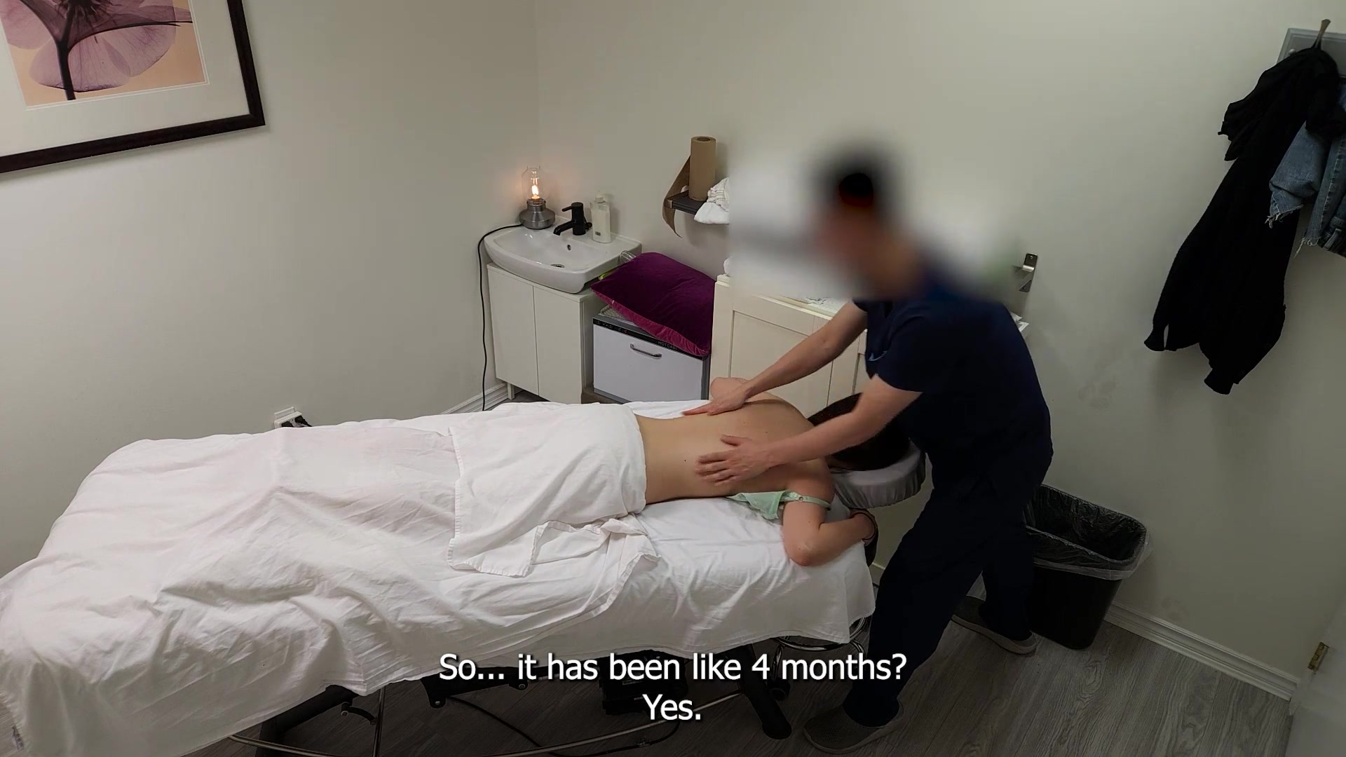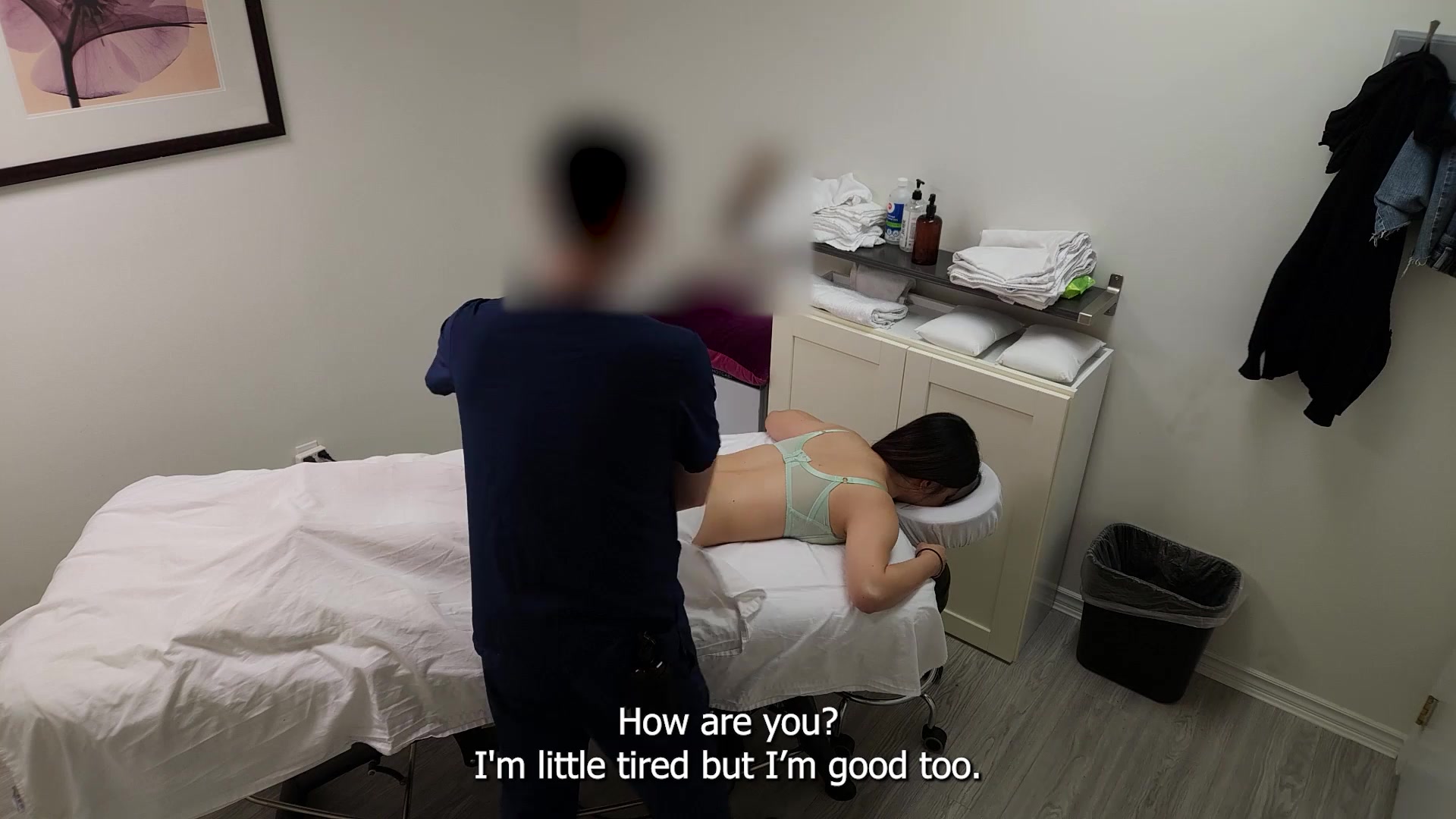 A gorgeous Japanese waitress who was like "no, no, no, I have a boyfriend" when her massage therapist was about to fuck her pussy, but she finished her massage with a big smile on her face