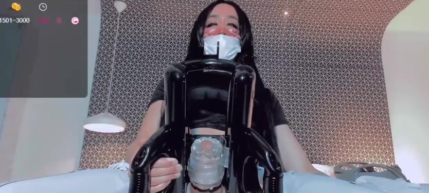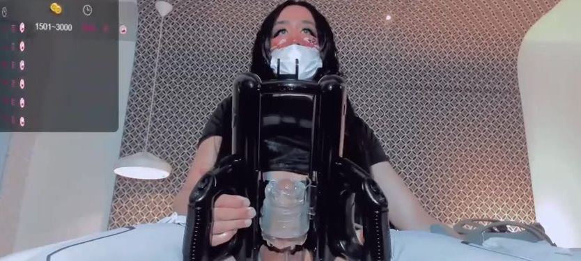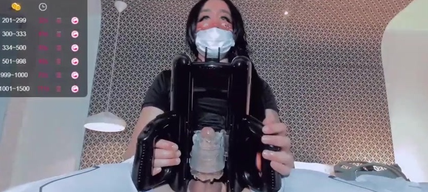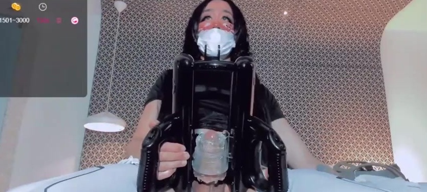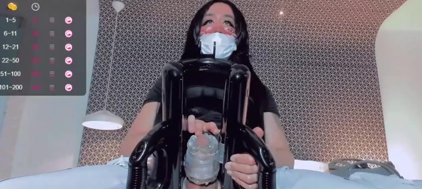 Description: Hot and horny heshe Kate Yoshy stroking her cock with a token powered Lovense masturbator on webcam, part three