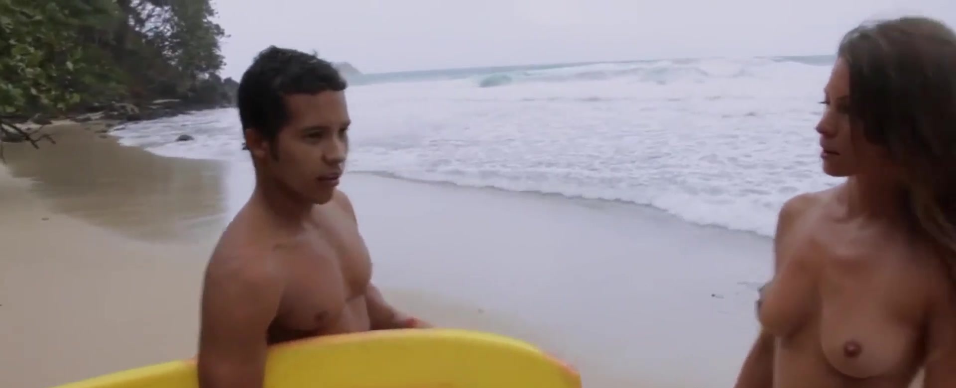 Big boobed badass naked babe Dani Mathers and GFS hop onto their surfboards