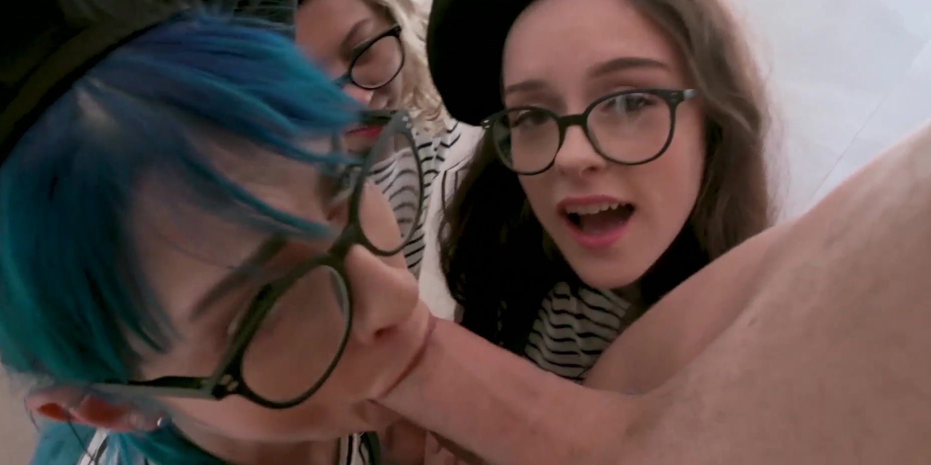 Description: Naked muscle dude is posing for a skinny blue haired teen artist Jewelz Blu with big boobs and her bisexual BFFs Lily Glee and Allie Addison They want to paint but they cant resist his big cock So they take off their clothes then they are fucking it