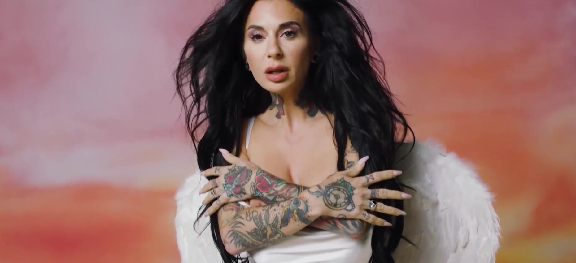 Description: Big tits MILF Joanna Angel on wings of lust and showed her perfect curvy and tattooed body after hot striptease Big ass MILF posed in hot costume After posing and striptease MILF revealed her stunning curvy body
