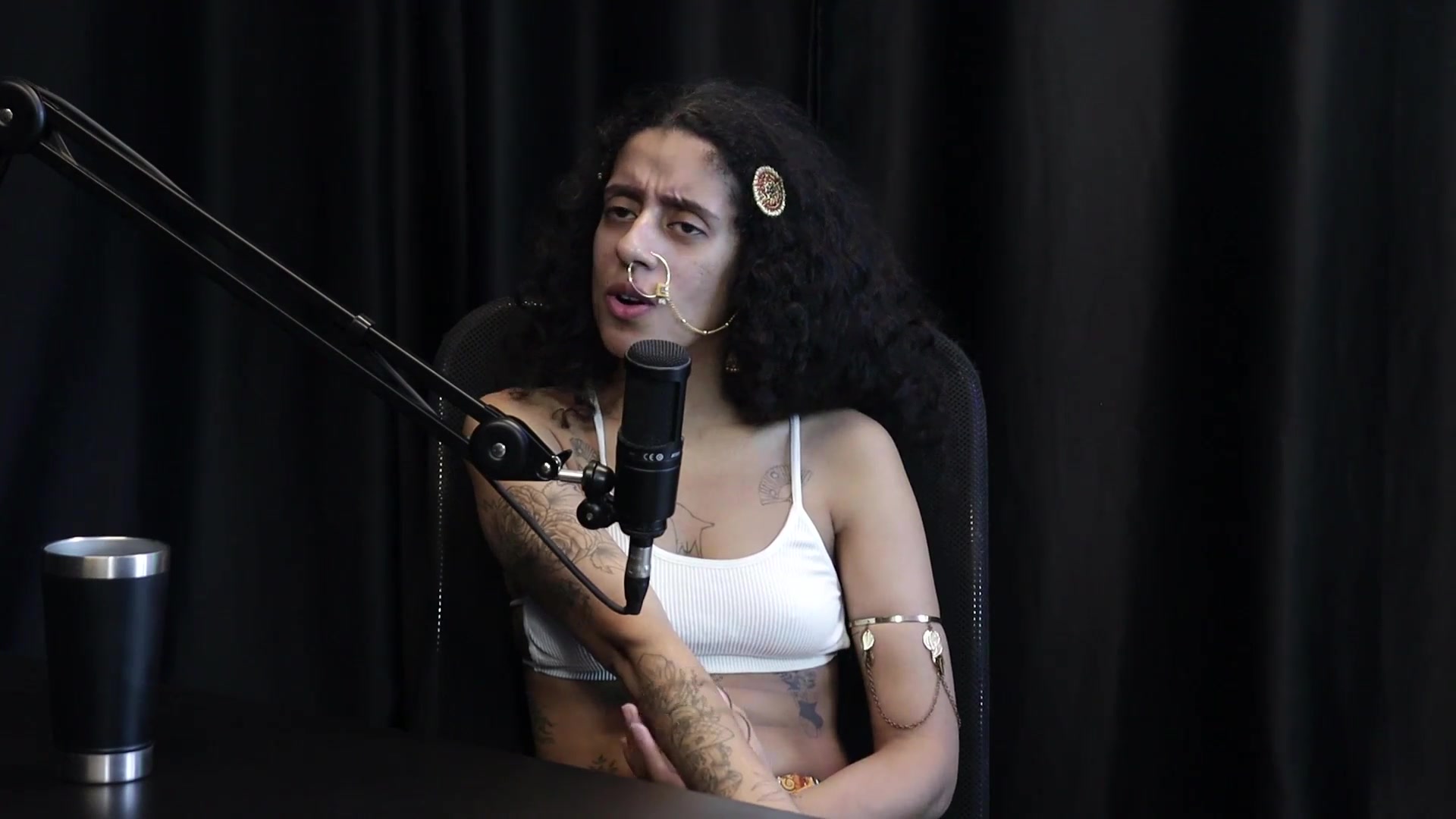 Bitch shows off her breast tattoos after saying she values her small achievements, likes to stick her finger in her butt, slaps, and refers to blowjobs - Bibi Hourani (WATCH ON: SHEER/RED)