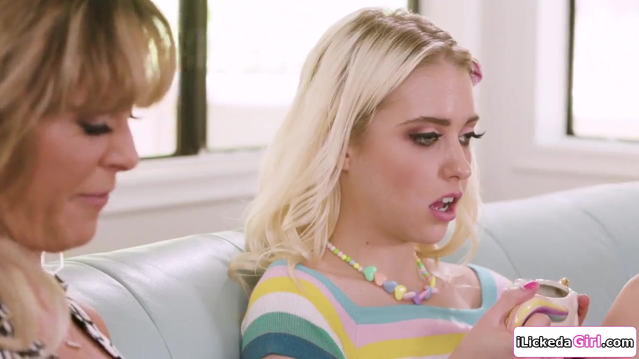 Blonde teen girl sniffing stepmoms best friends wet panties
