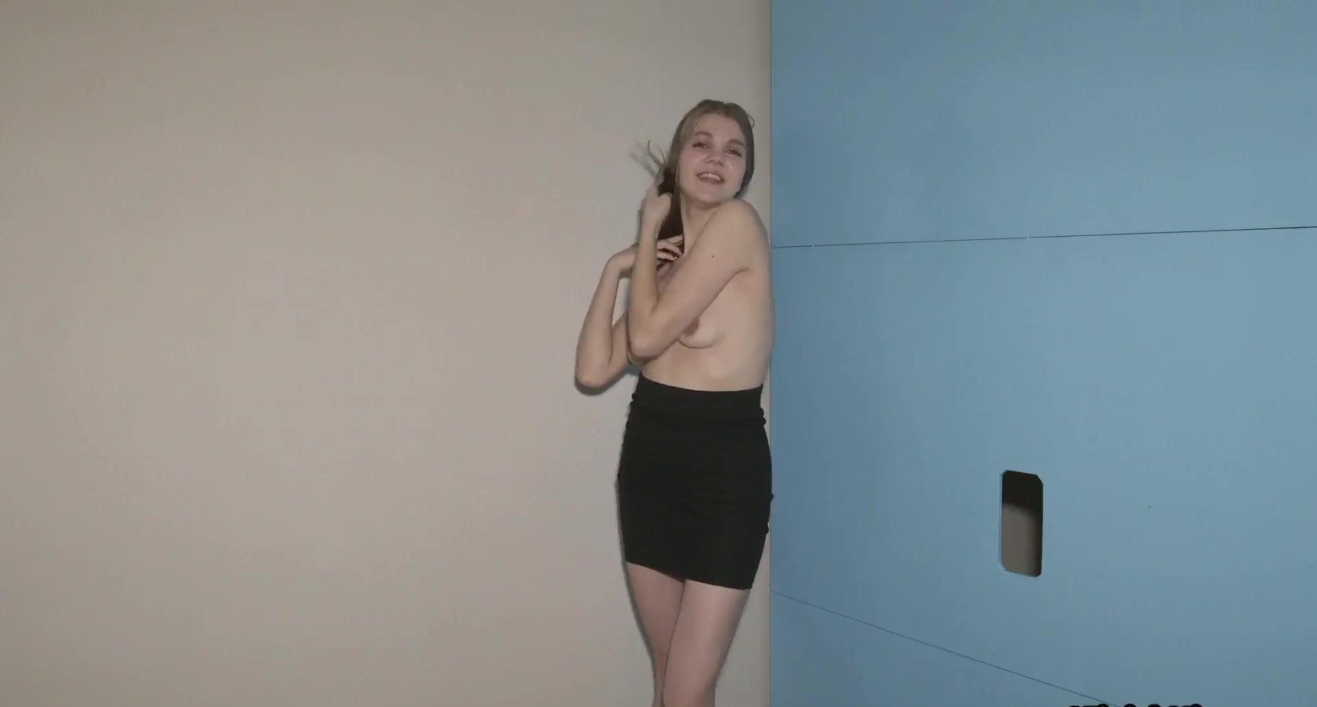 Description: Cocksucking 19yo jerks big white cock in glory hole