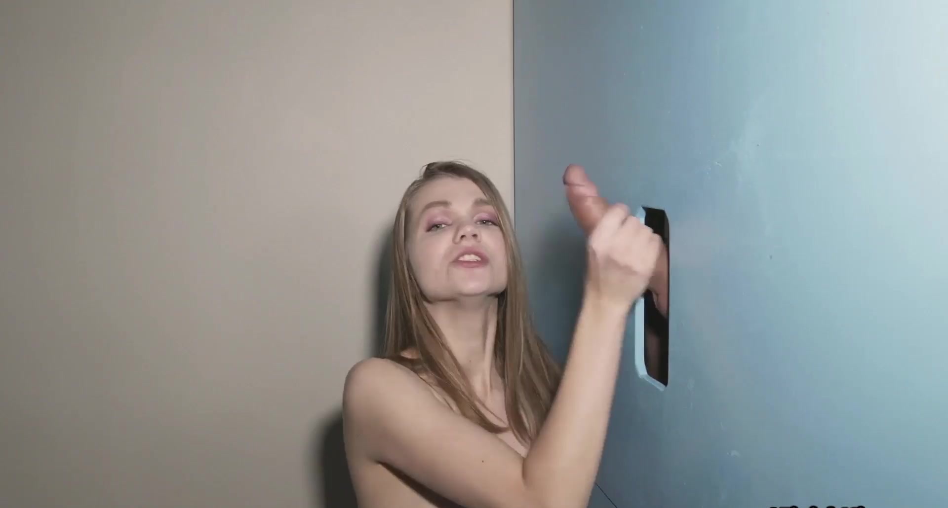 Cocksucking 19yo jerks big white cock in glory hole