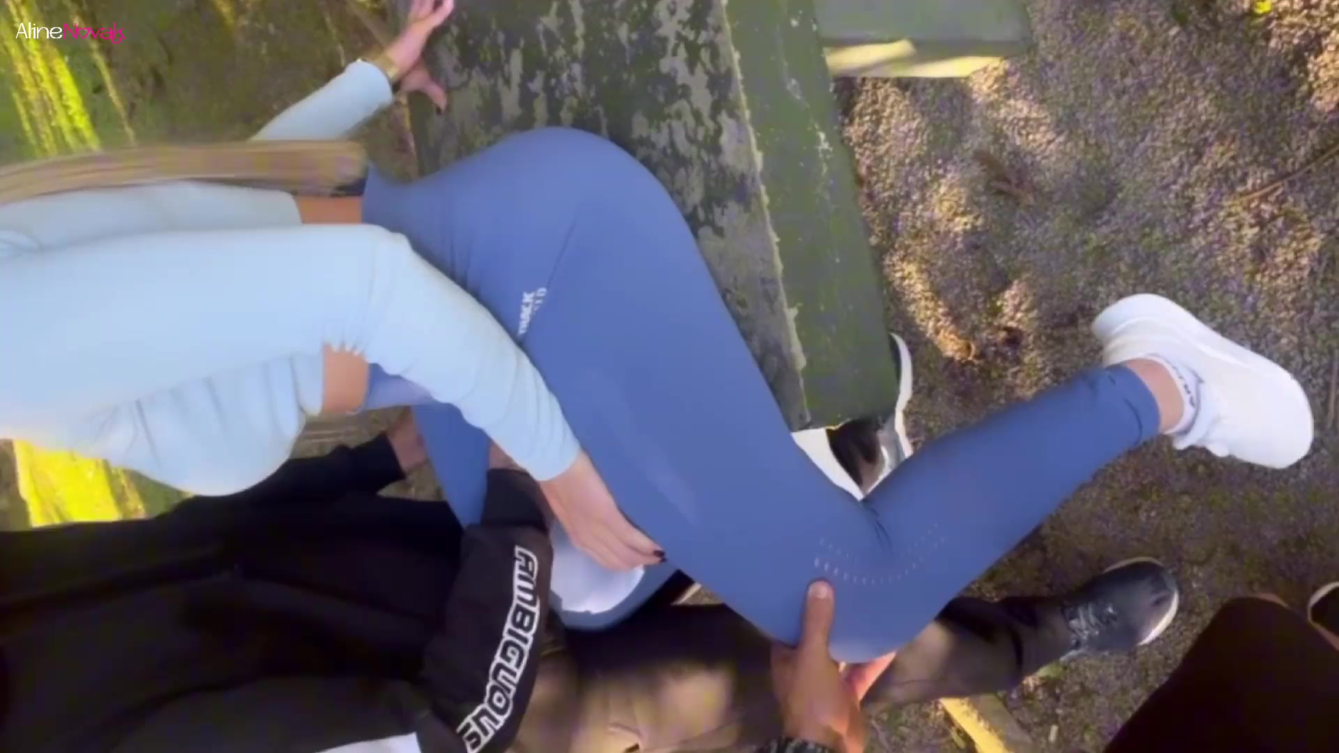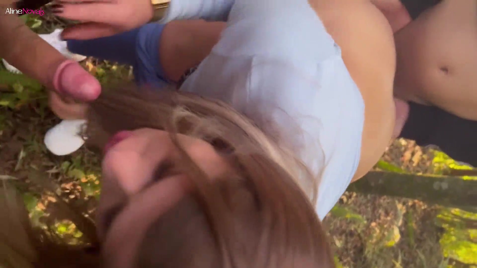 FUCKED by TWO GUYS in the park with CUM in her mouth - Aline Novak