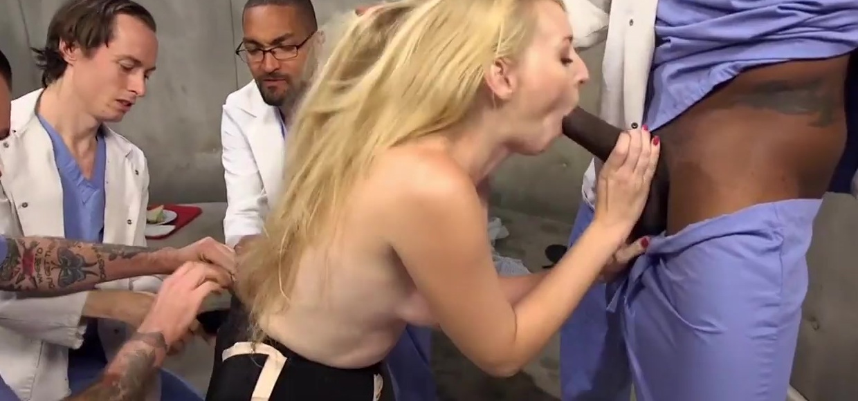 Gangbang IR slut rough fucked in BDSM by many doctors