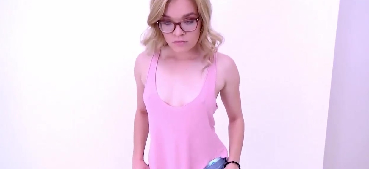 Hot Babe sucks big cock at audition wearing glasses