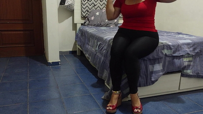 Step son's friend fuck his new step mom while phone talking in share bed