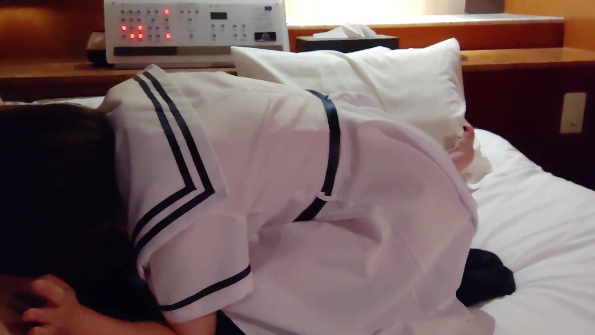 Step son's friend fuck his new step mom while phone talking in share bed