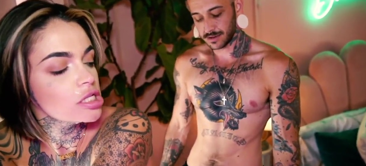 Description: MTF pussyboy strapon fucks inked amateur babe after licking