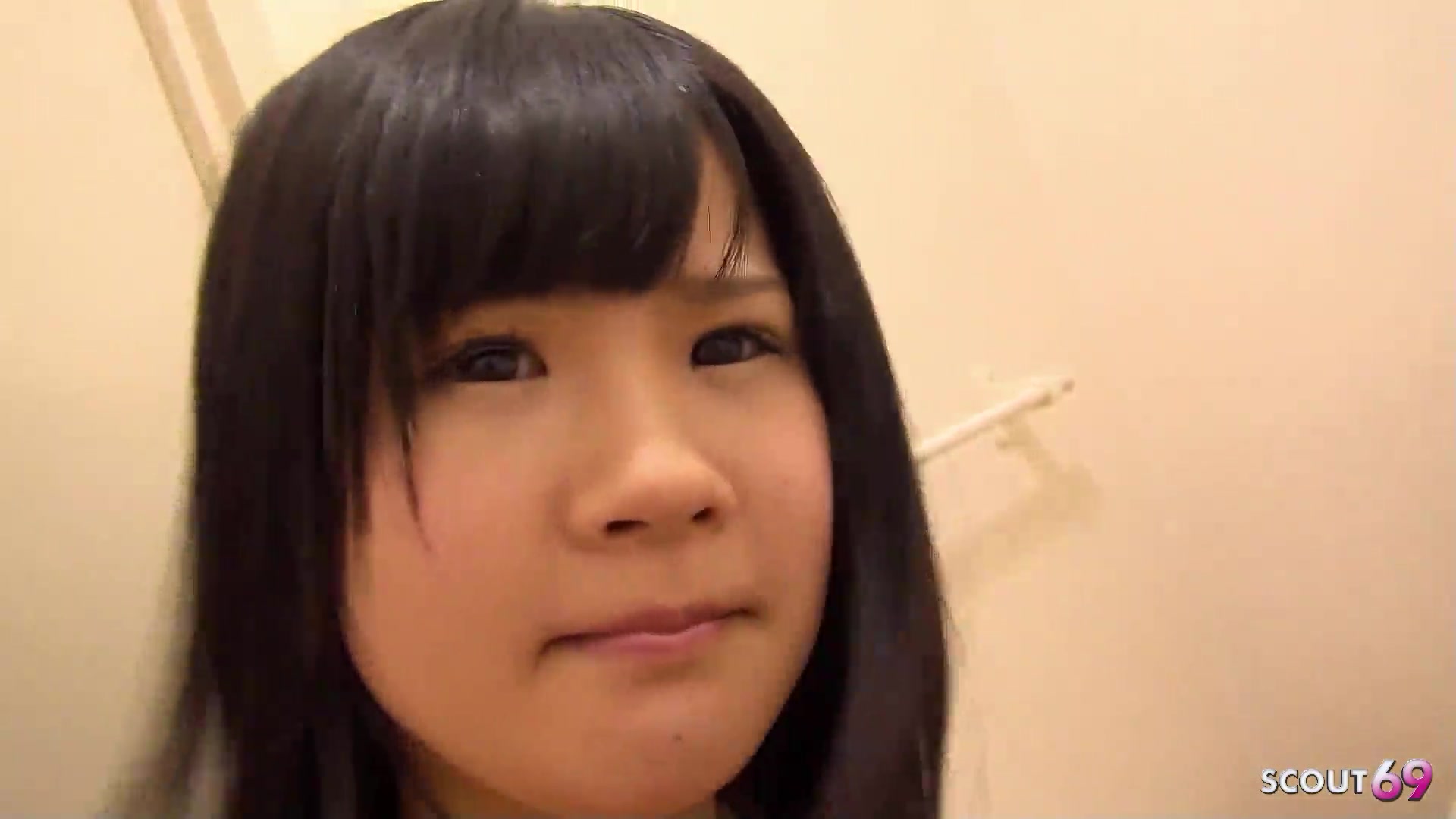 Petite Japanese Virgin Teen talk to First Time Suck on Public Toilet by old Guy
