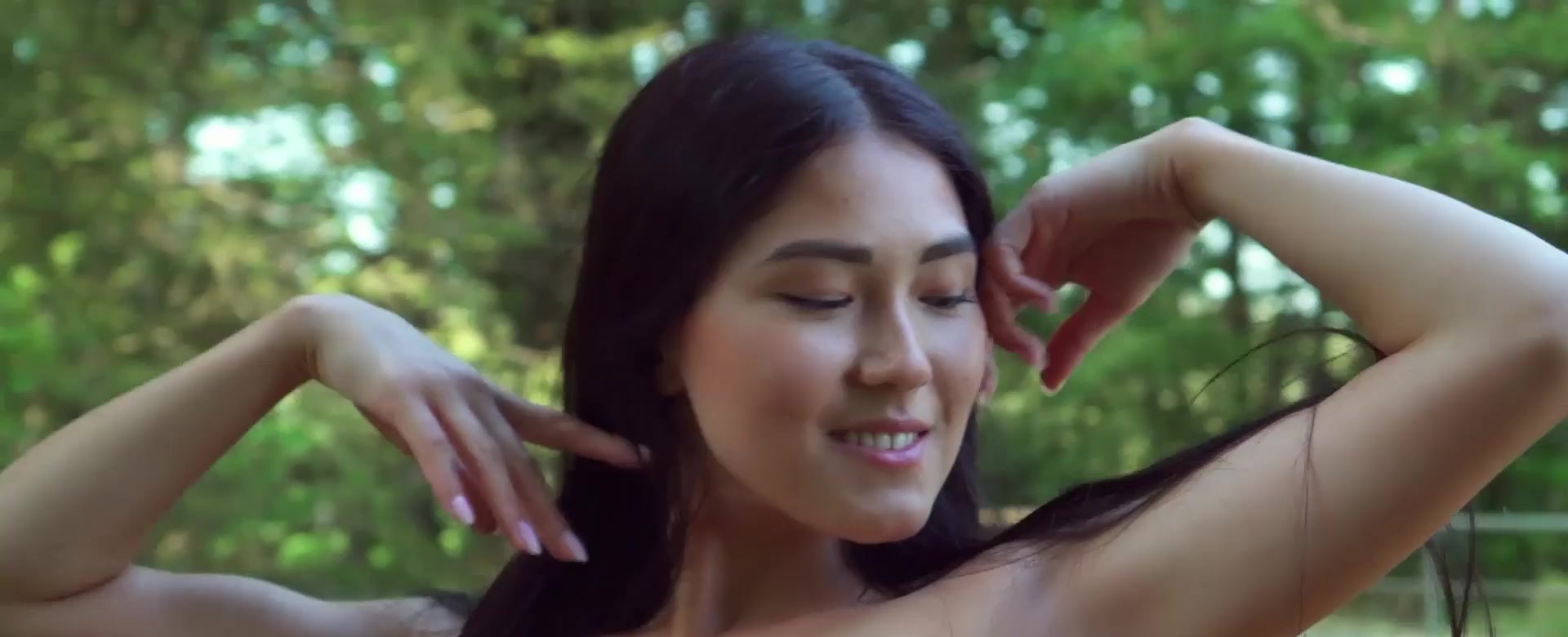 Description: Petite brunette mongolian beauty Kimiko with small tits is teasing on a flowery meadow outdoor She takes off her dress slowly to show us her shaved asian pussy and every secret of her perfect all natural body