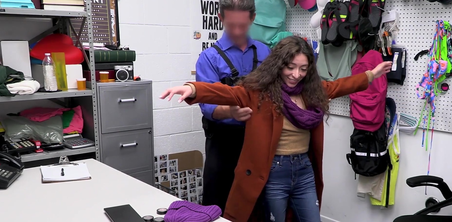 Description: Skinny brunette teen shoplifter Amber Summer with small tis tries to steal some makeup products but she gets caught by a dirty LP officer After the interrogation he pulls his big dick out and the slut knows exactly what to do to avoid jail