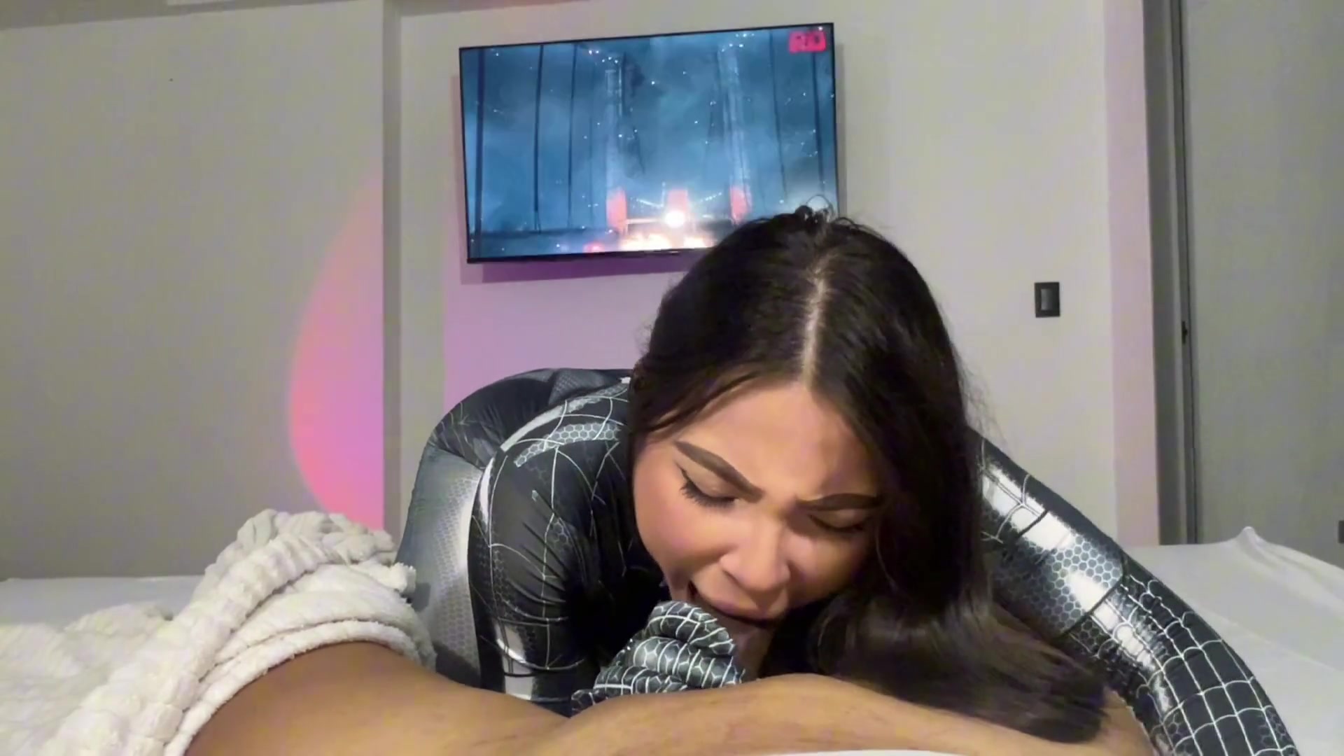 Playing video games I get fucked by a spider woman fetish fulfilled with amazing deep blowjob