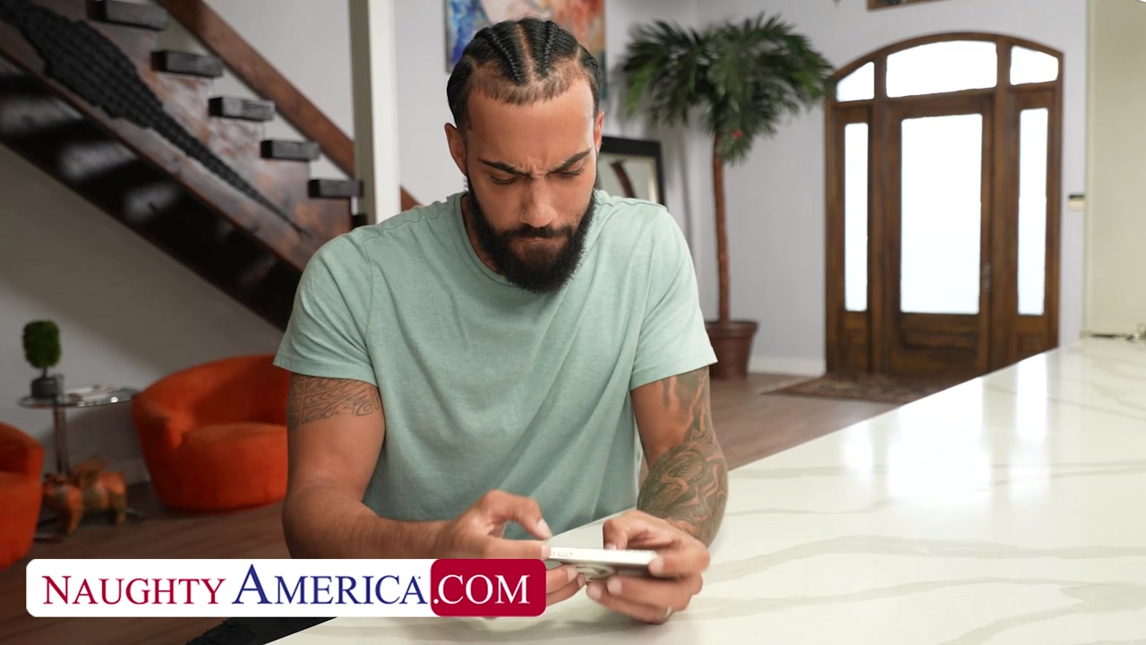Step son's friend fuck his new step mom while phone talking in share bed