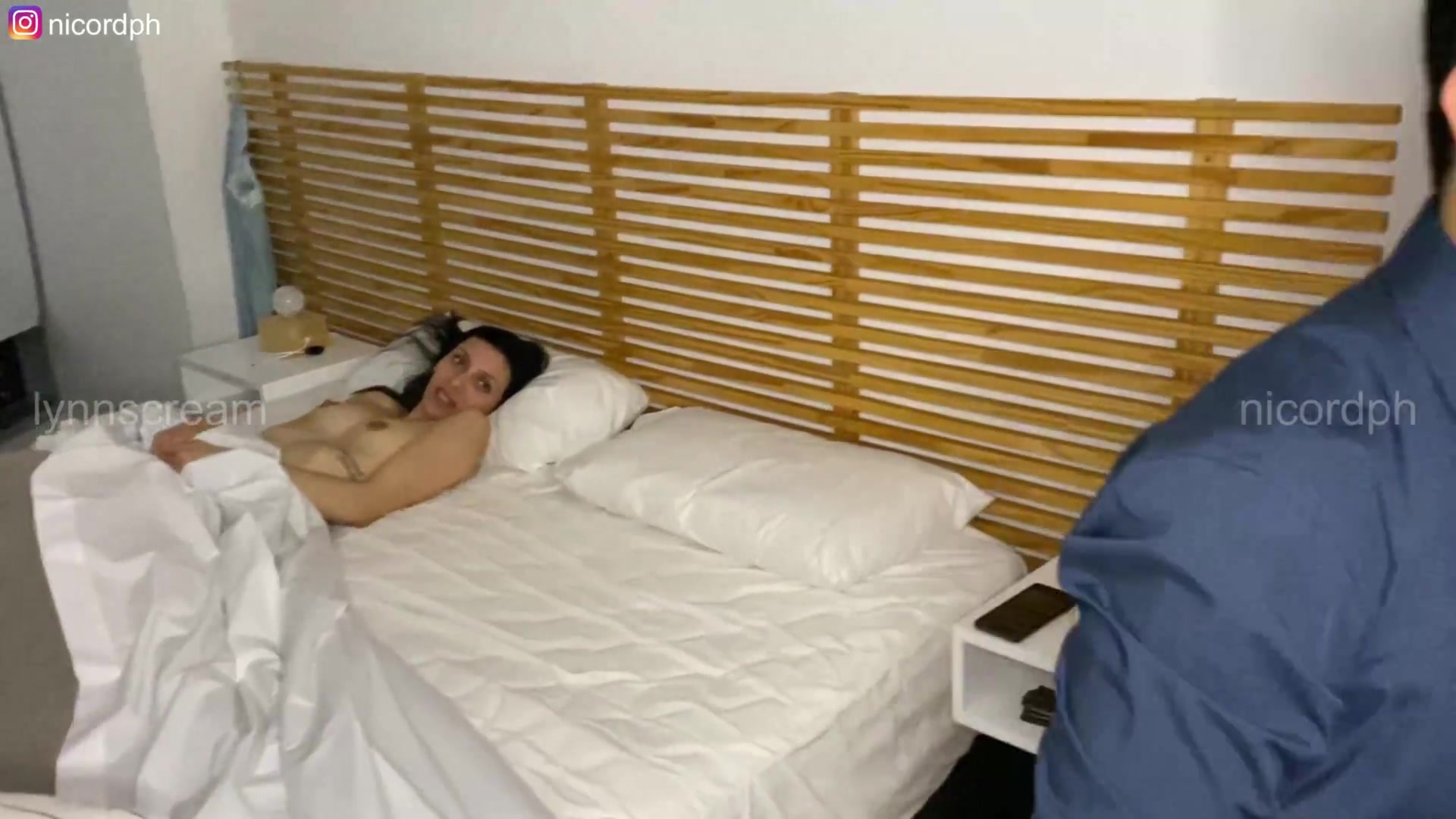 Step son's friend fuck his new step mom while phone talking in share bed