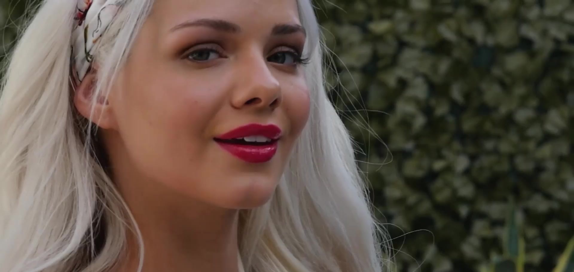 Description: Skinny blonde babe Elsa Jean with small tits in sexy red bikini is going to the pool She takes off her bran and panties slowly and she is showing us her perfect tits and her shaved pussy then she goes into the water to cool down her hot body