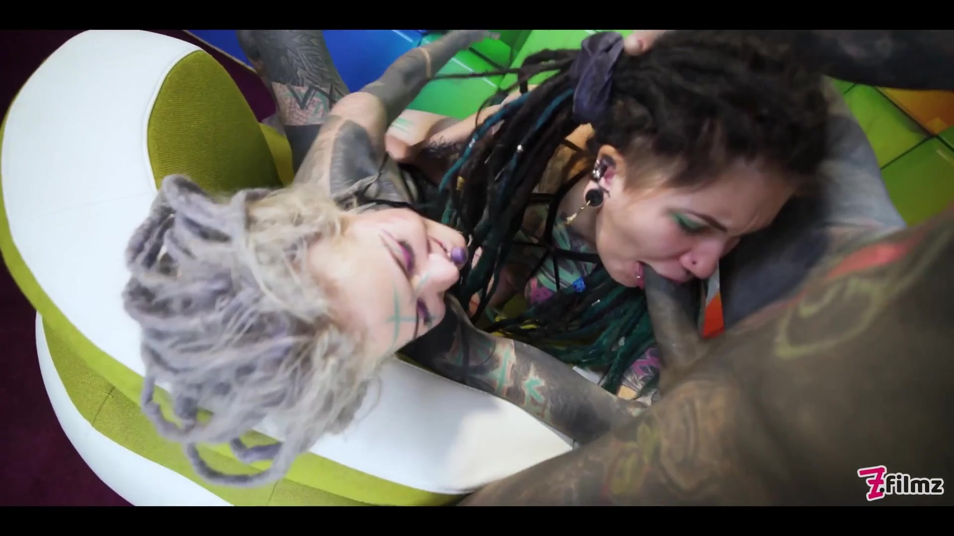 Tattoo 3Some Girls Gape Asses For Tattooed Penis