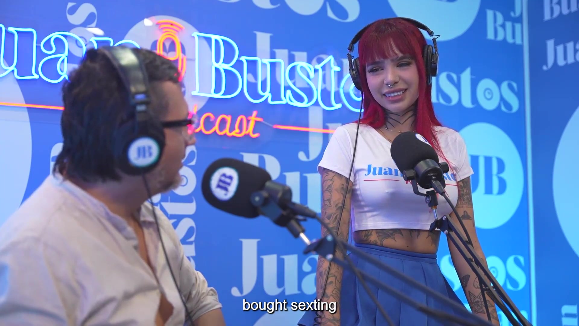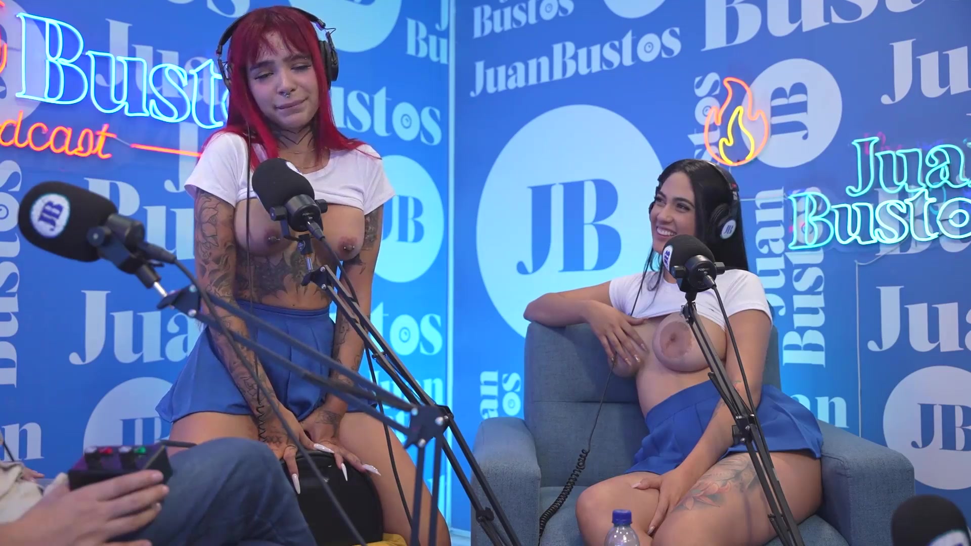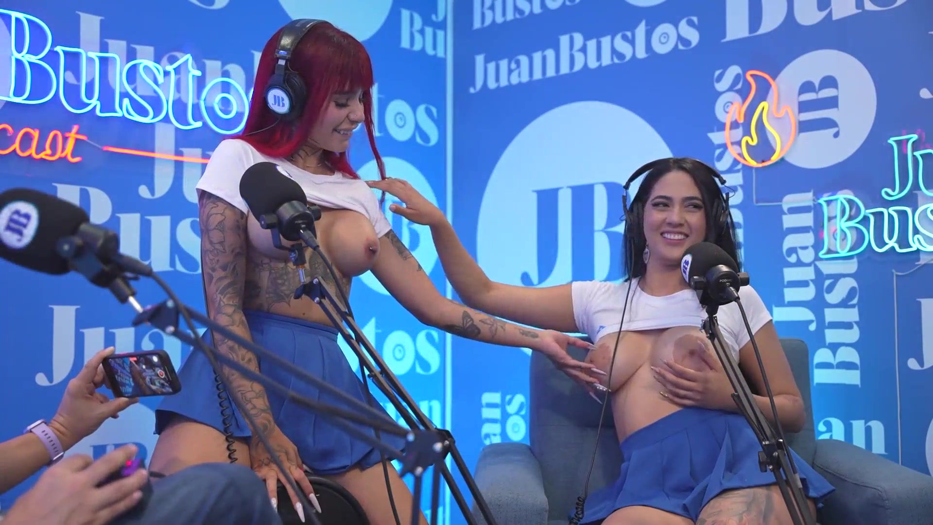 Tattooed redhead Diavlolilith kisses with her friend while her vagina vibrates - Juan Bustos Podcast
