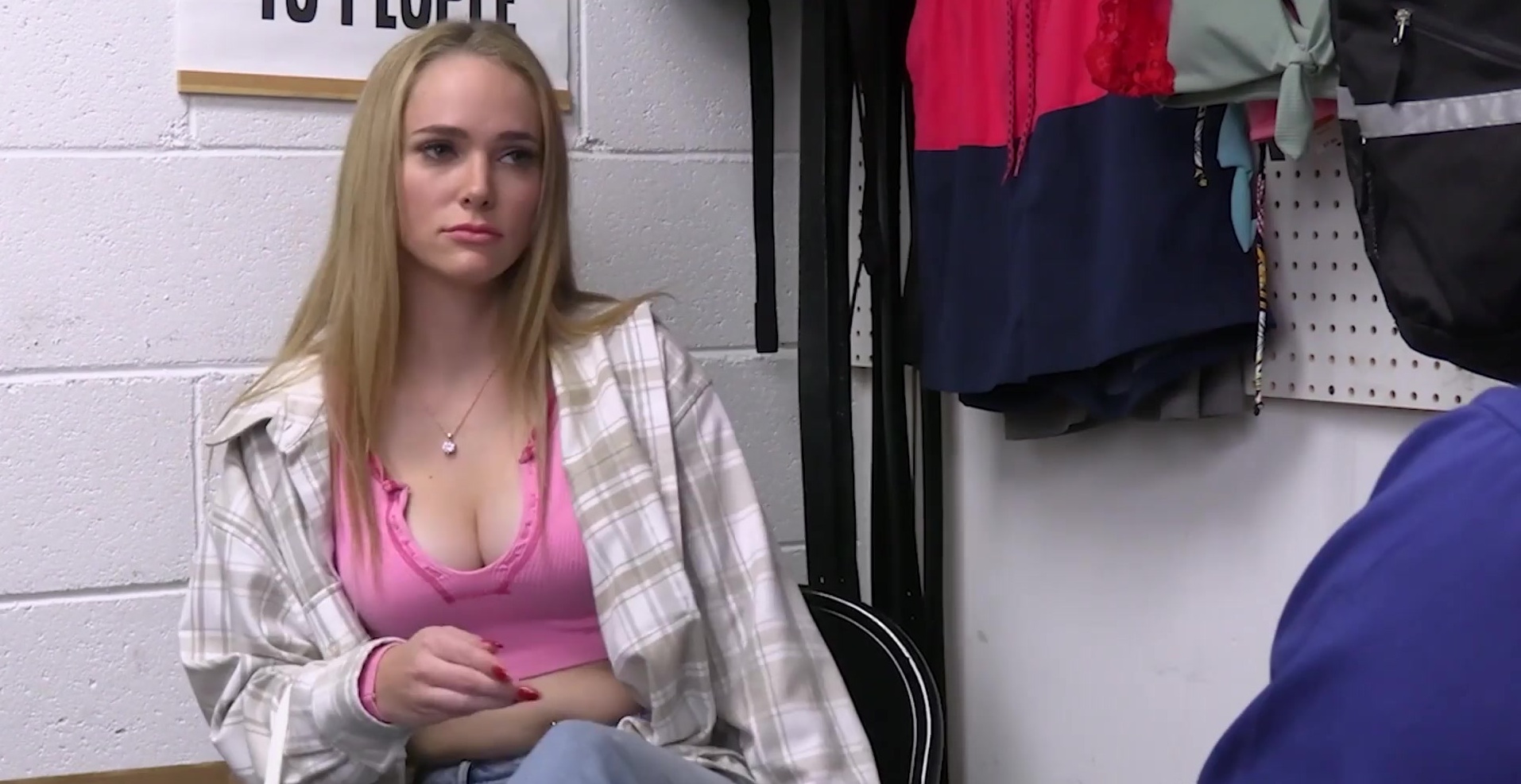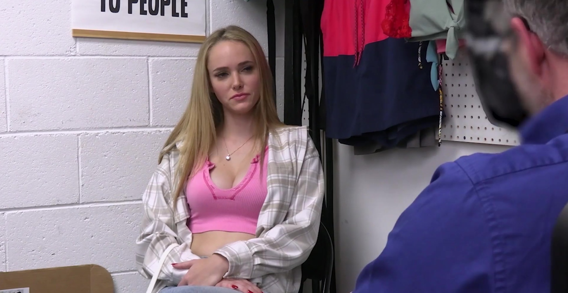 Description: Teen thief Athena Fleurs stole a vibrator but got caught by the Lost Prevention officer on duty who was not going to let her off easily for this crime! This is actually a felony so he threatened her to comply with his demands or would call the real cops!