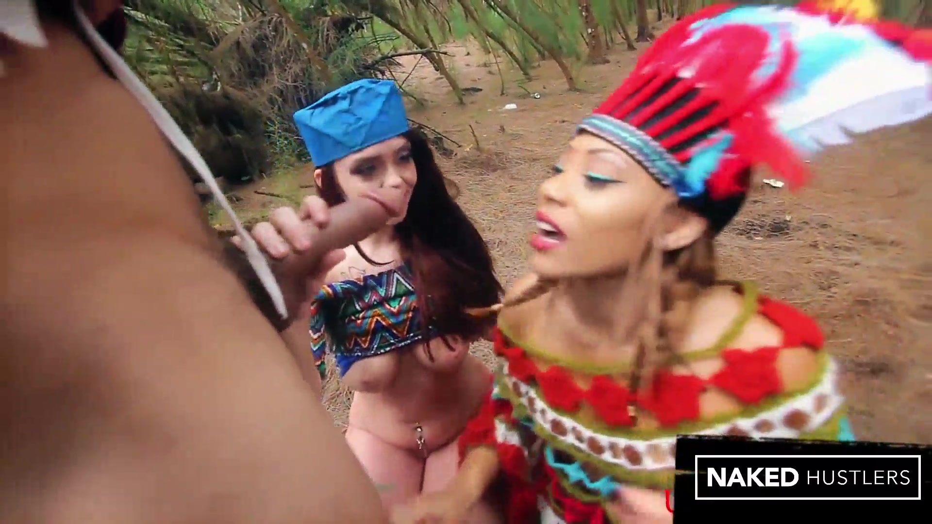 Thick Ass Ebony and Ivory Baddie's slurping on a penis outside in the woods