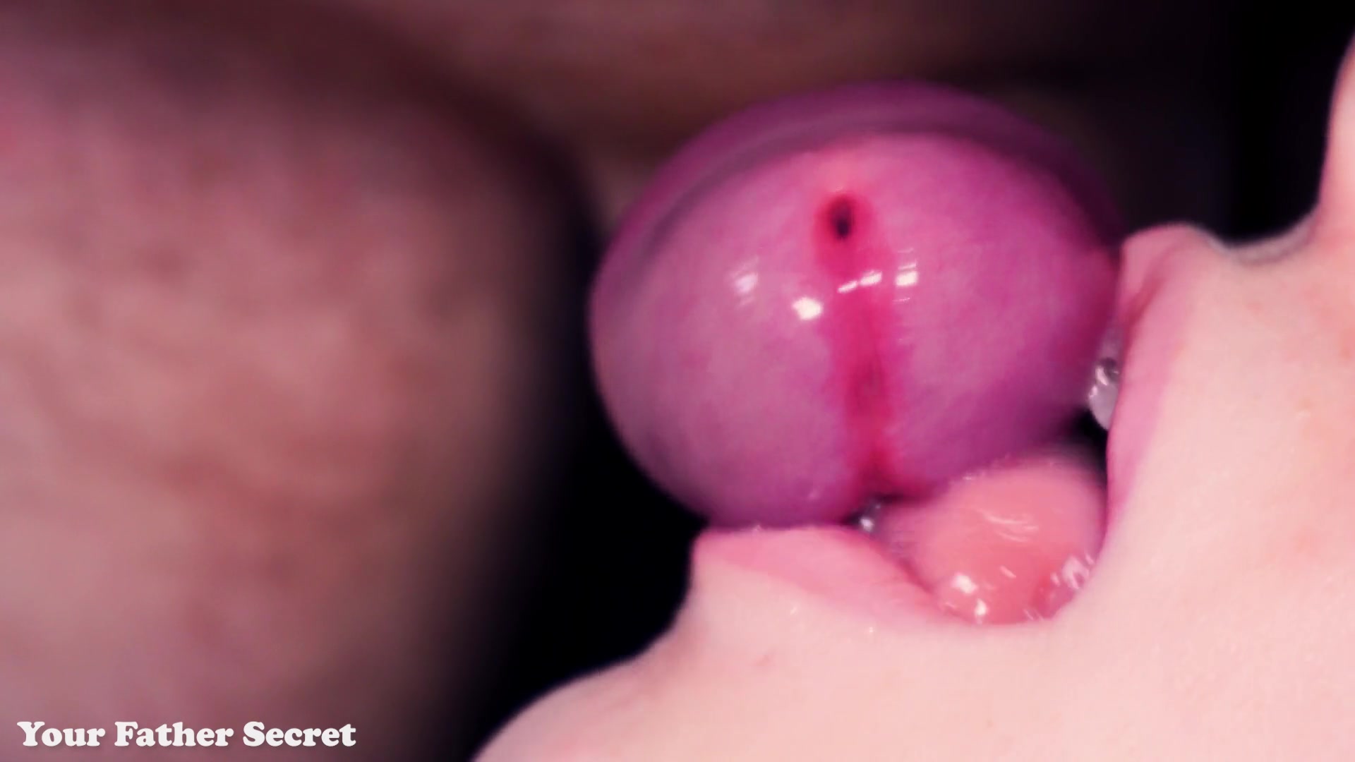 Ultra close up cum in her mouth! She lazy teases cock with lips and tongue, all face covered in cum