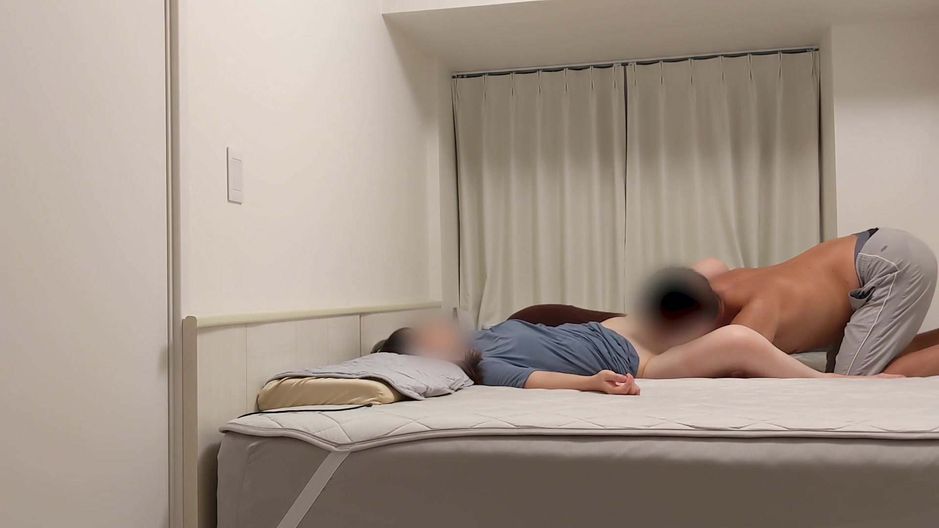 Step son's friend fuck his new step mom while phone talking in share bed