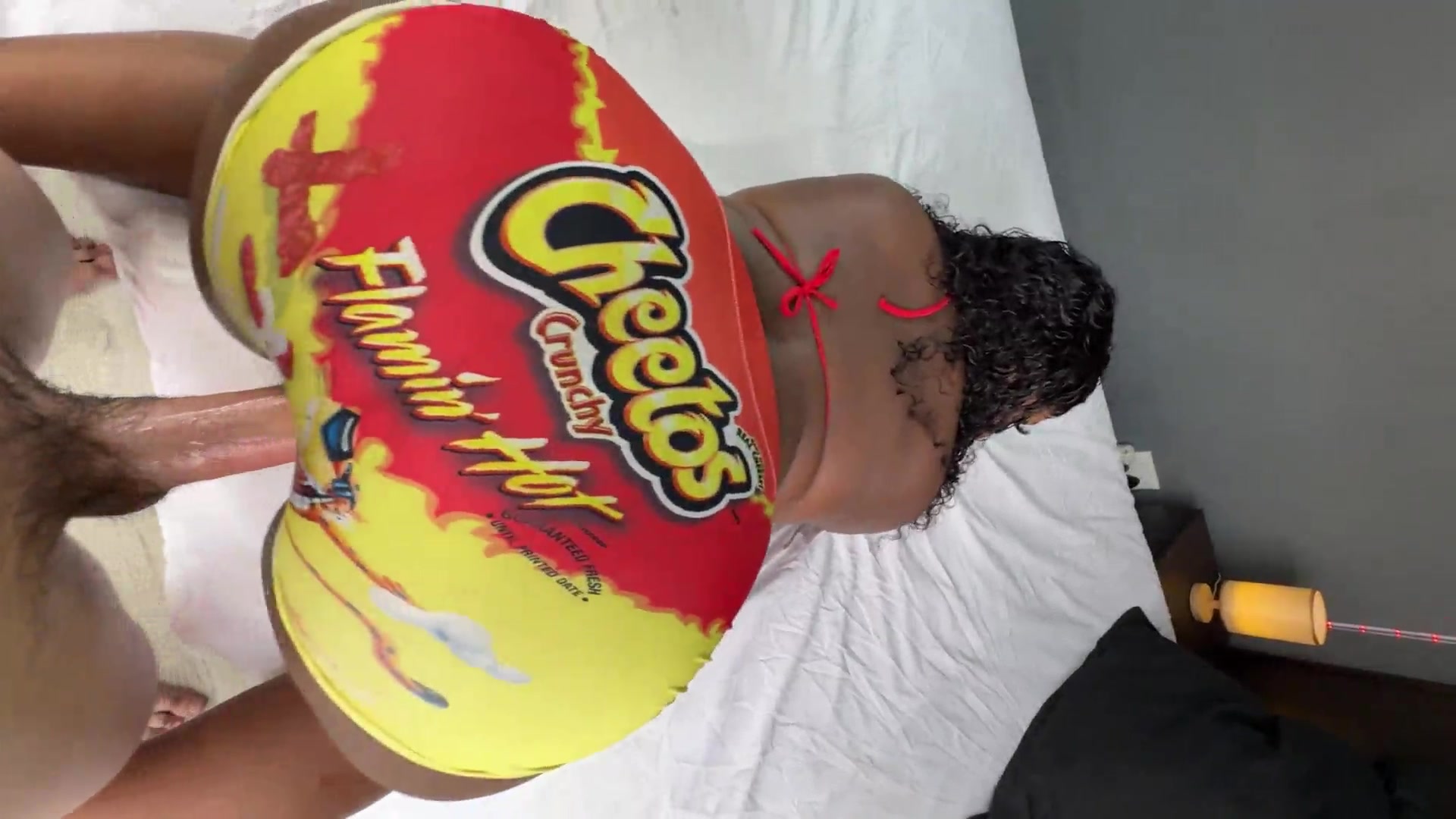 White Guy Gets To Fuck a Big Arse Black Chick Through a Hole in Her Tight Yoga Pants
