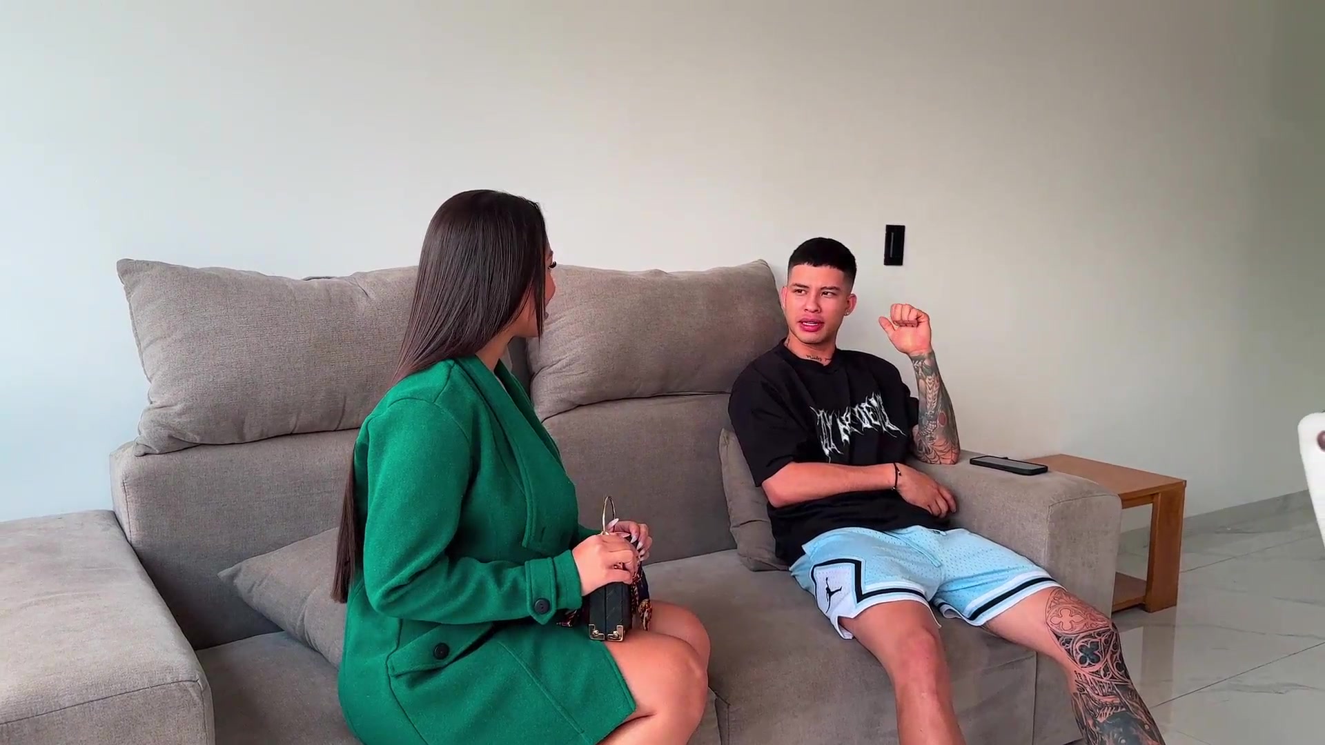 Step son's friend fuck his new step mom while phone talking in share bed