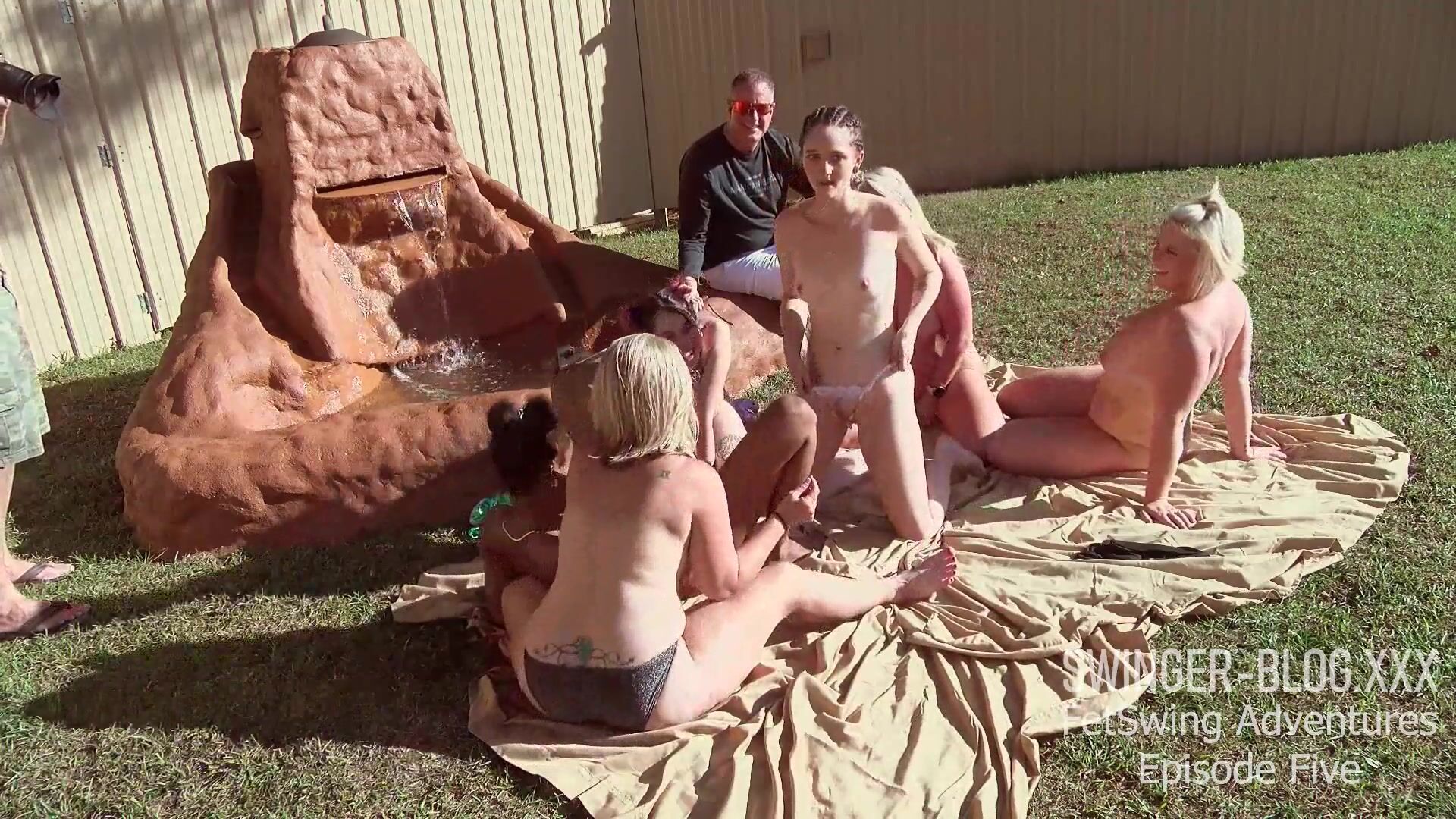 Amateur lesbian hotties licking and fucking each others wet cunts outdoor in swinger orgy video