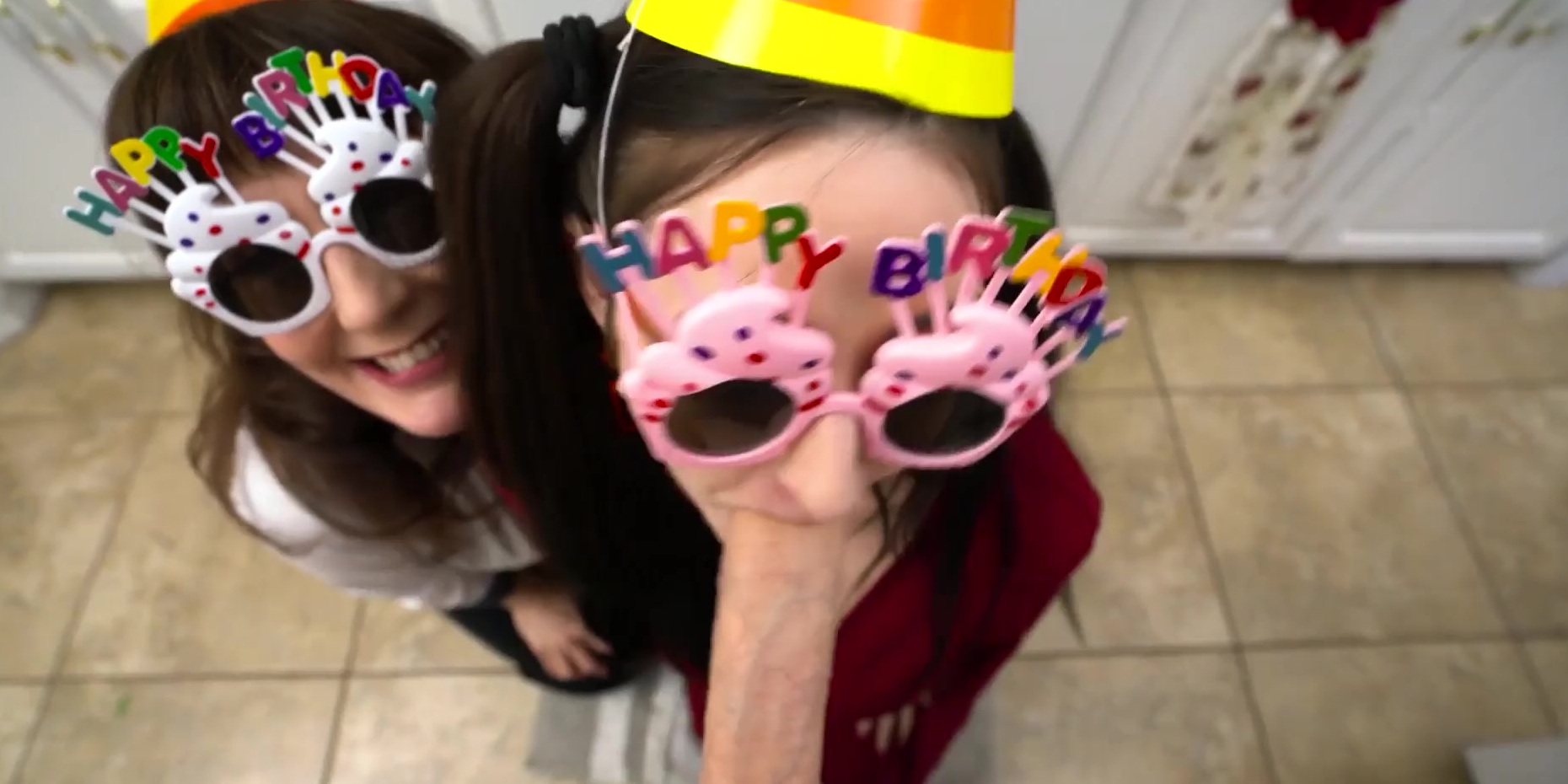 Birthday blowjob party with wet MILF stepmom and naughty teen stepsister