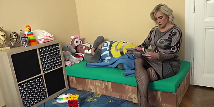 Blonde Cougar loves to play with little guy