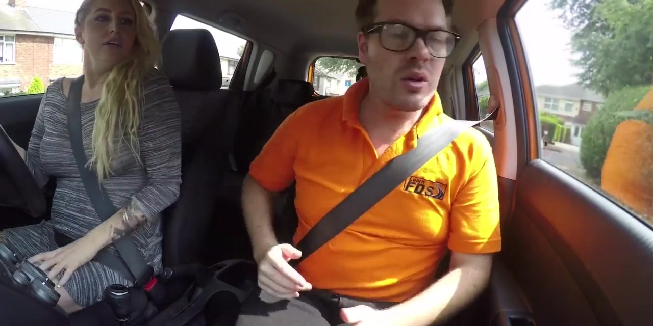 Description: Chubby UK blonde cockriding instructor in the car after giving him blowjob