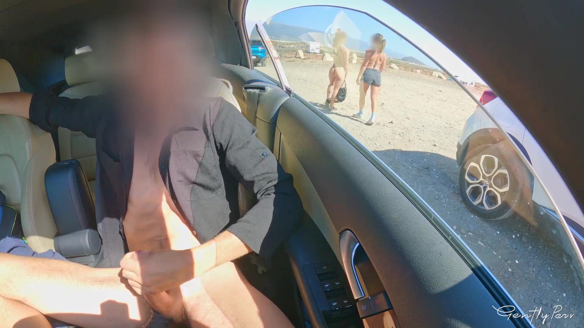 FACE REVEAL of the two girls: cock flash exhibitionism in car for two perfect body girls.