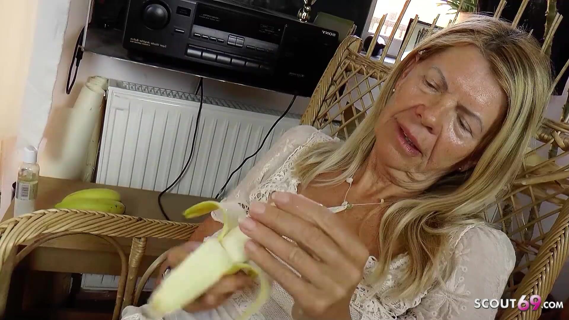 German old Granny catch masturbate and seduce to Fuck by Young Guy
