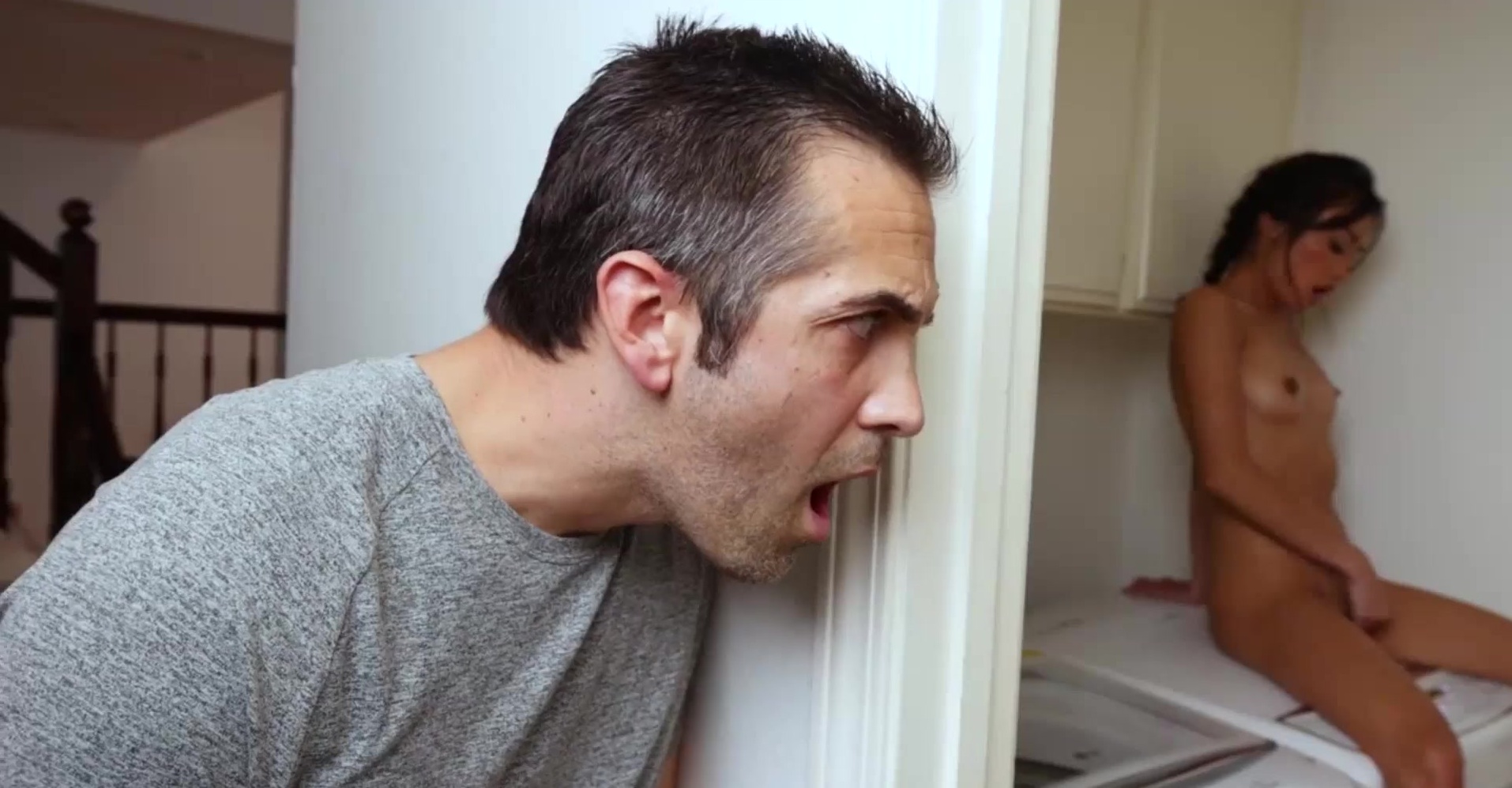 Description: When Donnie goes to the market Jade stays behind to play with her dildo After a few attempts to cum with no success she starts trying different things until she sits naked on the dryer This is when Donnie returns and catches Jade masturbating