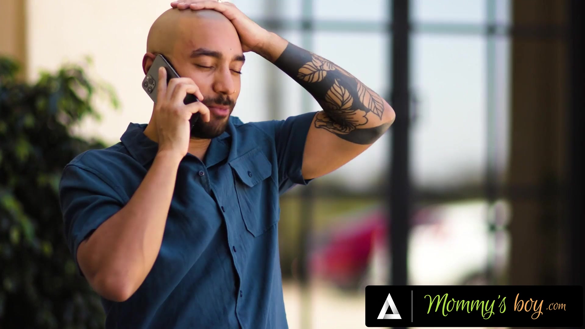 Step son's friend fuck his new step mom while phone talking in share bed