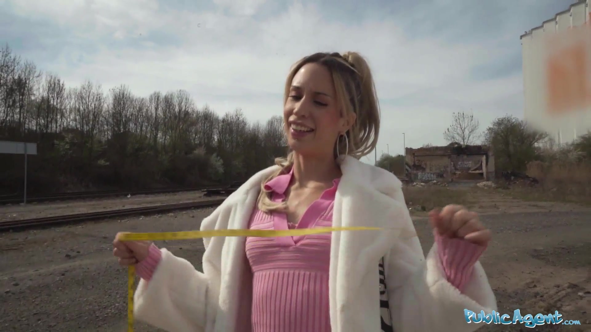 Public Agent She measures his big fat shaft in public and then fucks him hard