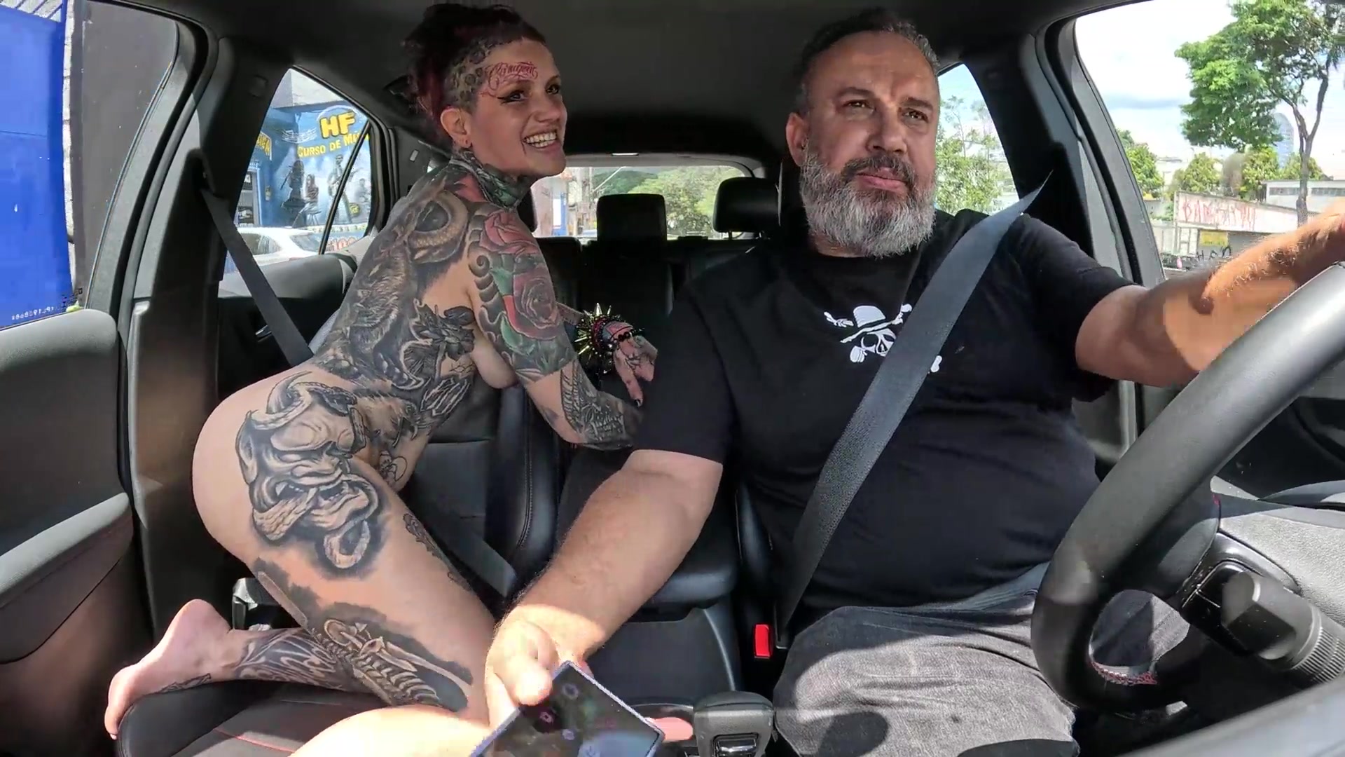Tattooed Naty Loka hitched a ride and gave her arse to the driver