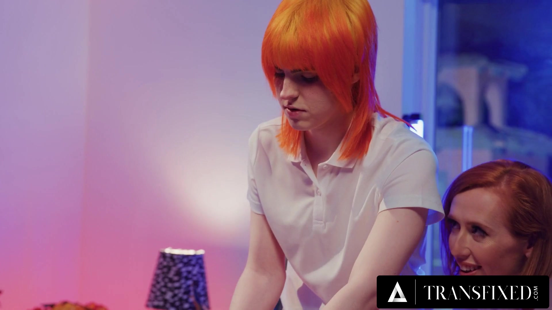 TRANSFIXED - Redhead Trans Shiri Allwood & Jean Hollywood Give Kenzie Anne Oiled Massage With Facial